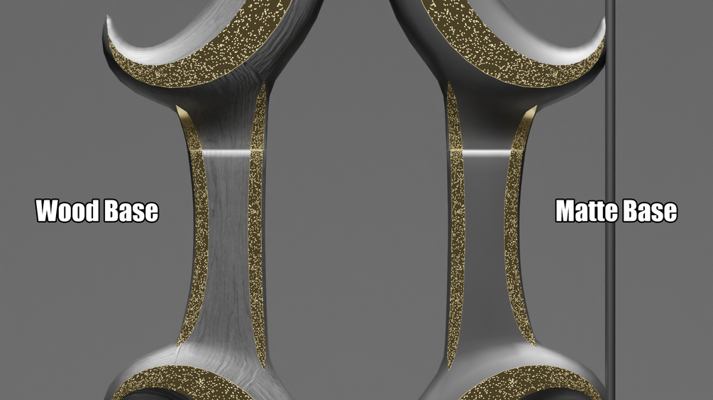 - Wood or Matte finish on the base of the bow (See 5th picture above).