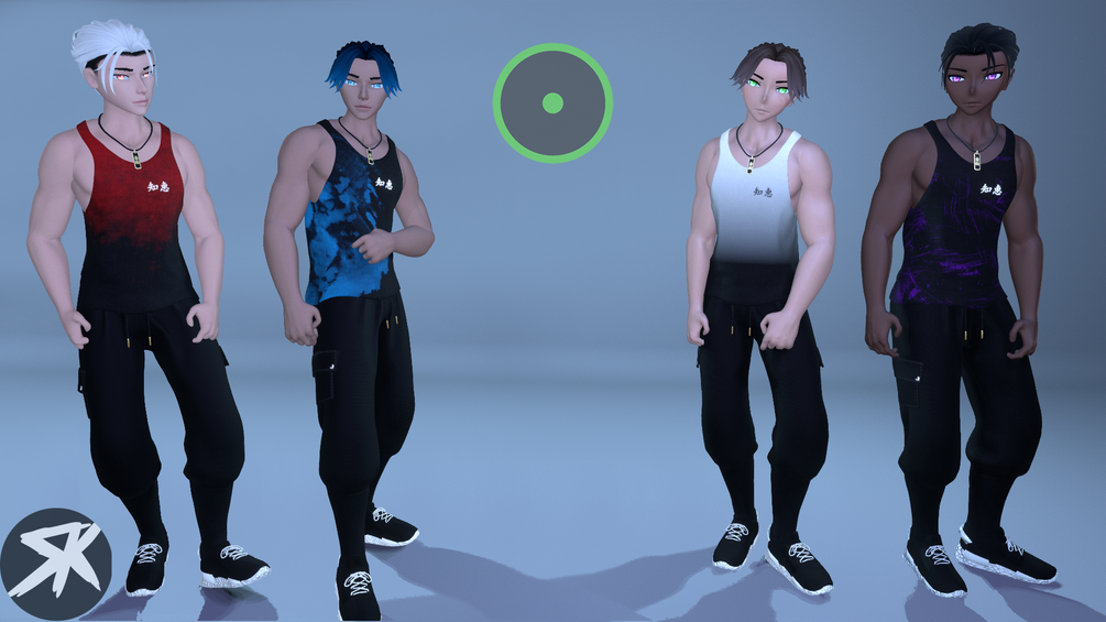 - In Summary: Multiple tops, bottoms, accessories, 10 textures and patterns for both the tank top and hoodie, multiple material swaps, hair swap and color wheel, global hue shift and emission sliders, alternate mask and hat options, glasses, skin tones + skin settings to change the intensity/depth of the skin in-game, etc.
